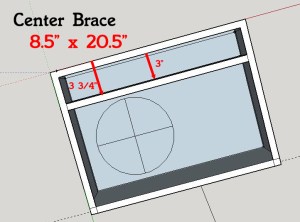 There will also be 2 internal braces in the subwoofer compartment. One will go right on the inner side of the subwoofer (towards the middle) and the other will be in the middle of the amplifier section. The one going in the amplifier section will have a cut out to fit around the amplifier. Once again, these will be window style bracing which will allow the air to flow. Approximate location is 11.5″ (side of subwoofer) and 16.5″ (middle of amp).