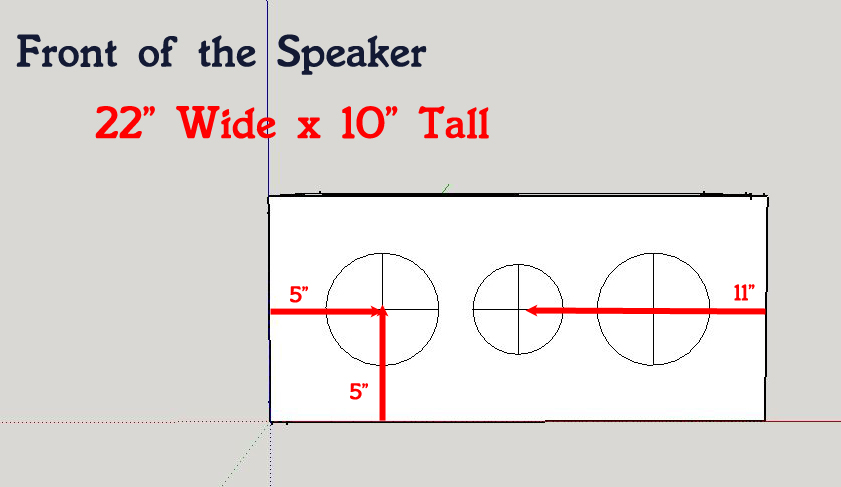 The Box is actually 2 compartments. Both compartment house their own two braces to reinforce the box and keep the best acoustical response. All the measurements taken are from 3/4″ material. All the speakers on the front of the box are placed directly in the center of the height (5″) Each of the Dayton woofers will be placed on the right and left 5″ over and the Tweeter will be placed 11″ over or directly in the center.
